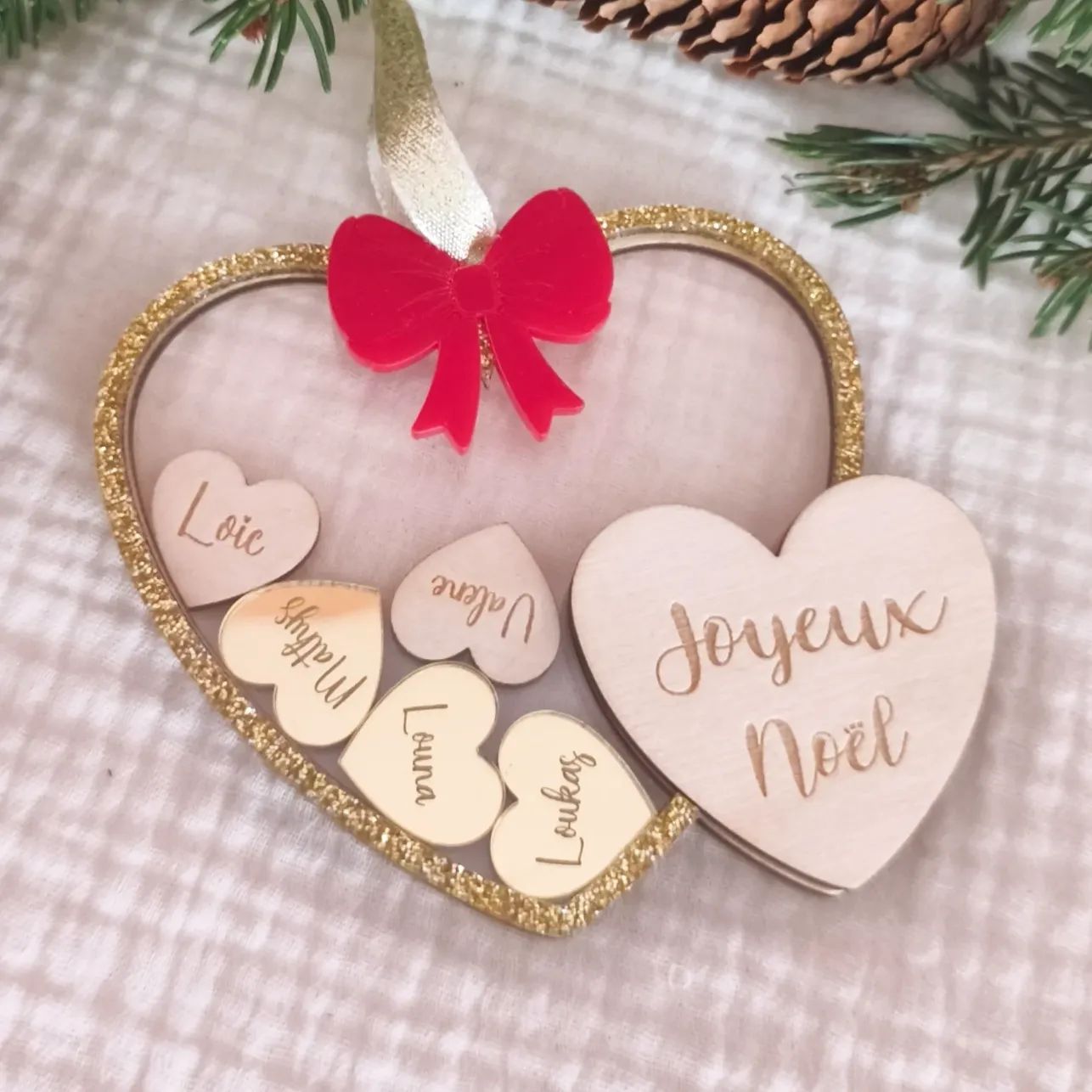 Chaque petit cœur est personnalisé avec les prénoms de vos proches, pour que votre sapin raconte votre histoire 🎄❤️